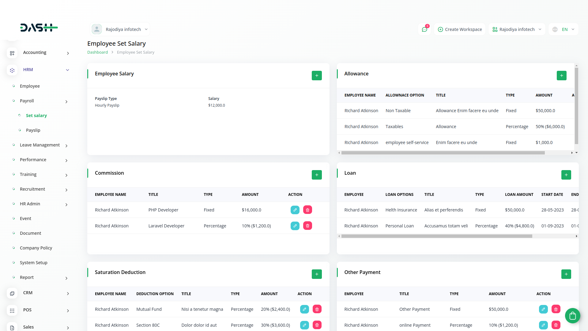 This comprehensive feature facilitates the activities of HR. It is easy to maintain a record of promotions, transfers, work trips, terminations, warnings, and other important aspects of HR.